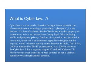 Information technology law (also called “cyberlaw”) concerns the law of information technology, including computing and the internet. It is related to legal informatics, and governs the digital dissemination of both (digitalized) information and software, information security and electronic commerce. aspects and it has been described as “paper laws” for a “paperless environment”. It raises specific issues of intellectual property in computing and online, contract law, privacy, freedom of expression, and jurisdiction.