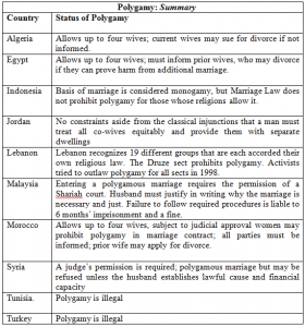 - The condition that a second or subsequent marriage be “just and necessary” could be a potent tool for regulation, but its ambiguity is cause for concern because it could also be used to justify polygamy on the slightest grounds. In some cases, for example, authorities may accept the wife’s “failure” to produce a male heir as sufficient grounds for granting permission for polygamy (Bangladesh, Pakistan). To counter this, courts in Singapore encourage adoption in such cases, rather than a second marriage.2