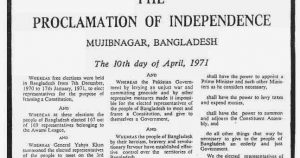 In this proclamation, the background and reason for the struggle of independence was mentioned. The then Pakistani ruler declined to transfer power to the elected representatives of the people of this country, rather they started indiscriminate killing. They did not summon the session of the constituent assembly consisting of the members elected in 1970 general election where Awami League bagged 167 seats out of 169. President Yahya Khan without summoning the session scheduled on March 3, had postponed it for an indefinite period. And thereafter, initiated the operation Searchlight.