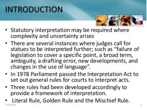 There is however the argument that as the law is expressed in language there are factors that will influence the interpretation and application of legal rules, however by having a set of rules to follow in the interpretation of the rules, it does not suggest rigidity in the result and it is possible for the result to be the “wrong” result. However, the rules of statutory interpretation are varied, it is not one set rule, and therefore the most effective rule should be applied in consideration of the case. Together the rules allow for contemplation and are the starting point to allow for the most effective action in upholding the law.