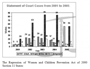 Though separate data for trafficking cases are not available, but the figure mentioned earlier indicate the ‘over all’ picture of the ‘special legislation’ enacted ‘in favour of women and children.’